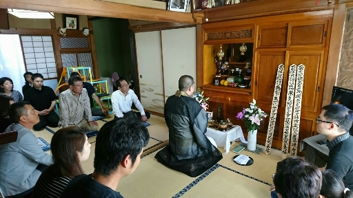 施餓鬼法要と年忌法要の様子。(施主宅に於いて)